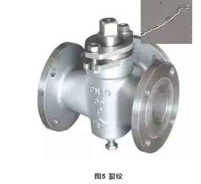 裂紋的存在減少了閥門承載截面積,而且裂紋端部形成尖銳的缺口,應力高度集中,容易擴展導致破壞。通常明顯可見的裂紋是不允許的,無論其位置和大小均判定為不合格。發(fā)現(xiàn)裂紋后可以用砂輪打磨,若確認裂紋已經(jīng)完全消除,且未損傷閥門表面,厚度減薄又不明顯,可以判定為合格,否則按退貨處理。