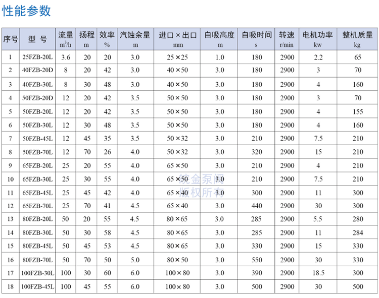皖金泵閥氟塑料離心自吸泵主要參數(shù):