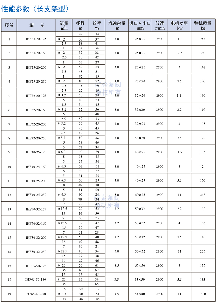氟塑料離心泵又稱其為塑料離心泵、襯氟離心泵、耐腐蝕離心泵,IHF-L氟塑料離心泵長(zhǎng)支架型和短支架型。